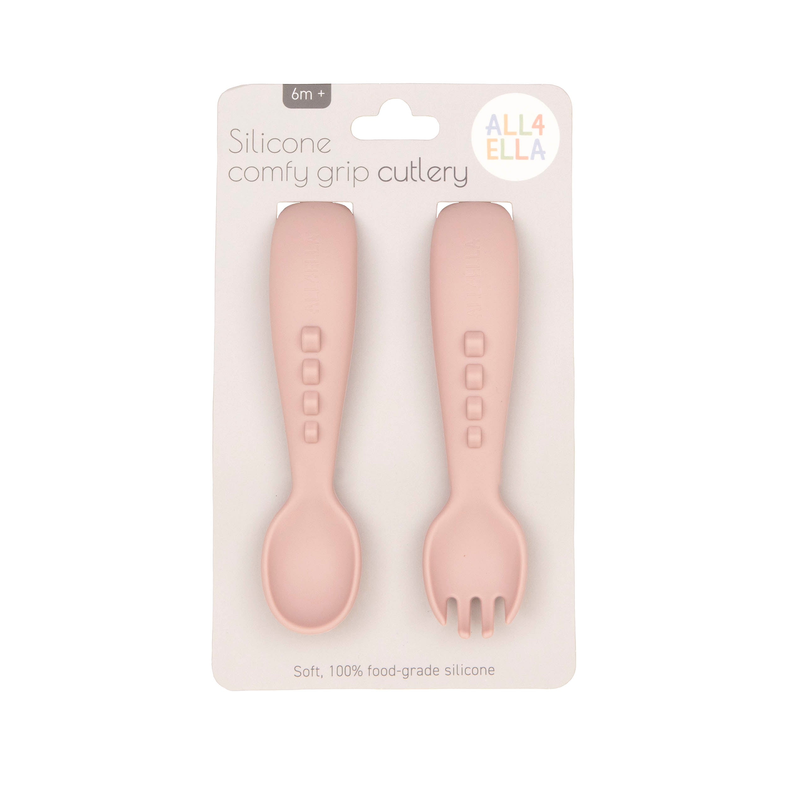 Mealtimes just got easier with our Dusty Pink Silicone Comfy Grip Cutlery Set, thoughtfully designed to support your little one’s transition to independent feeding.