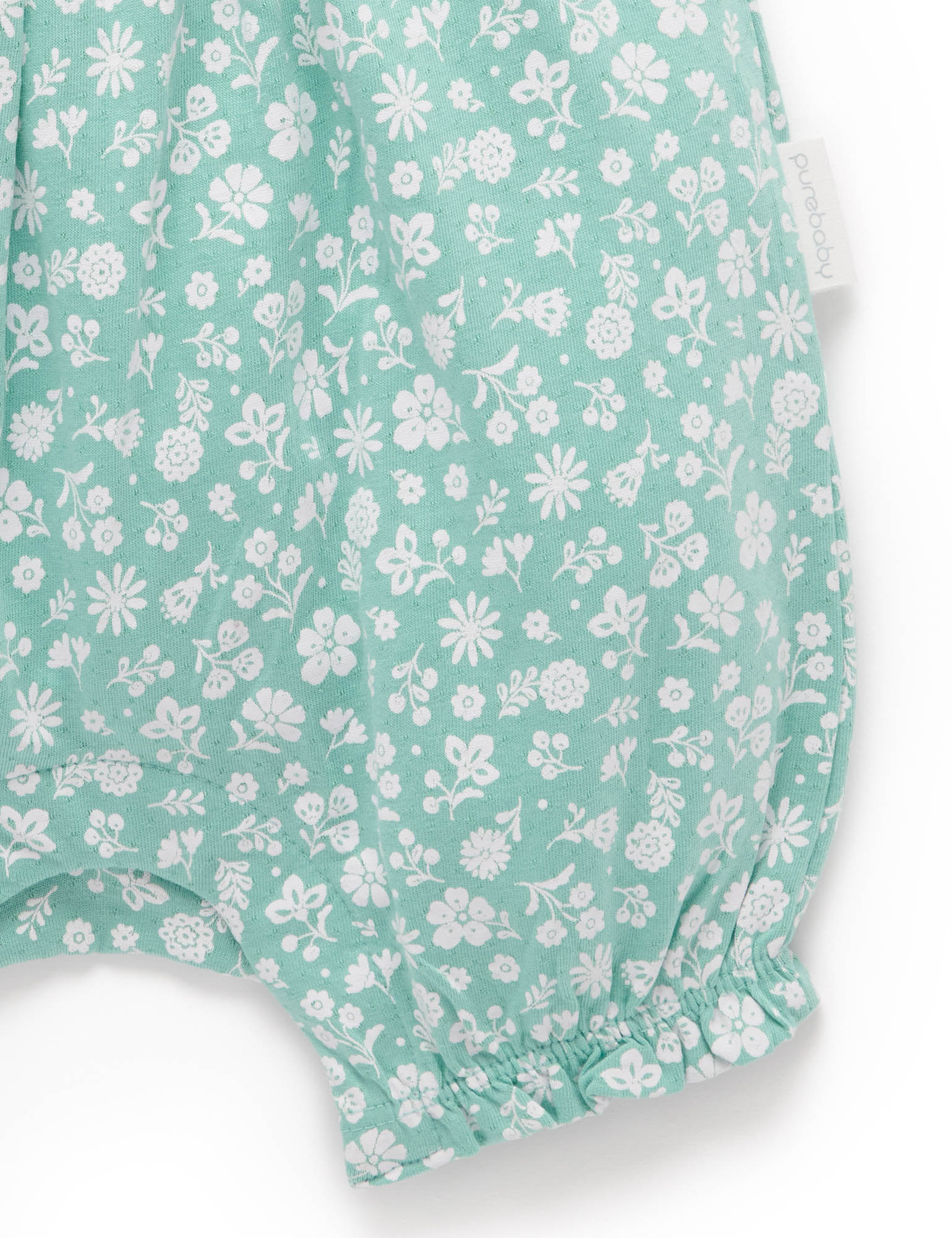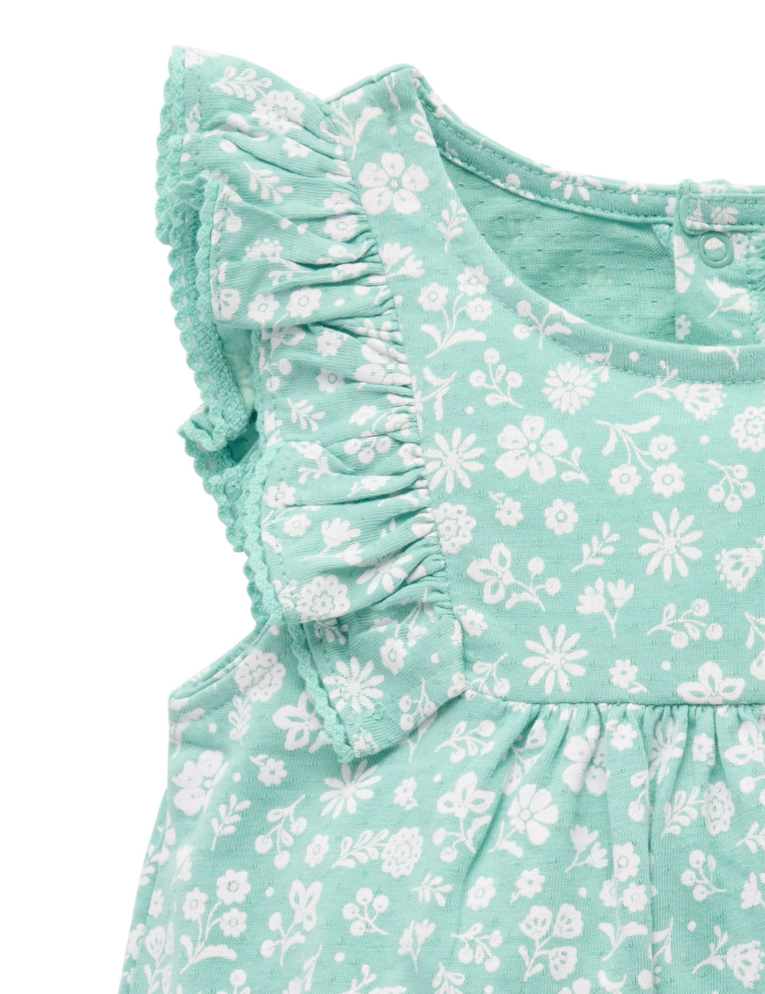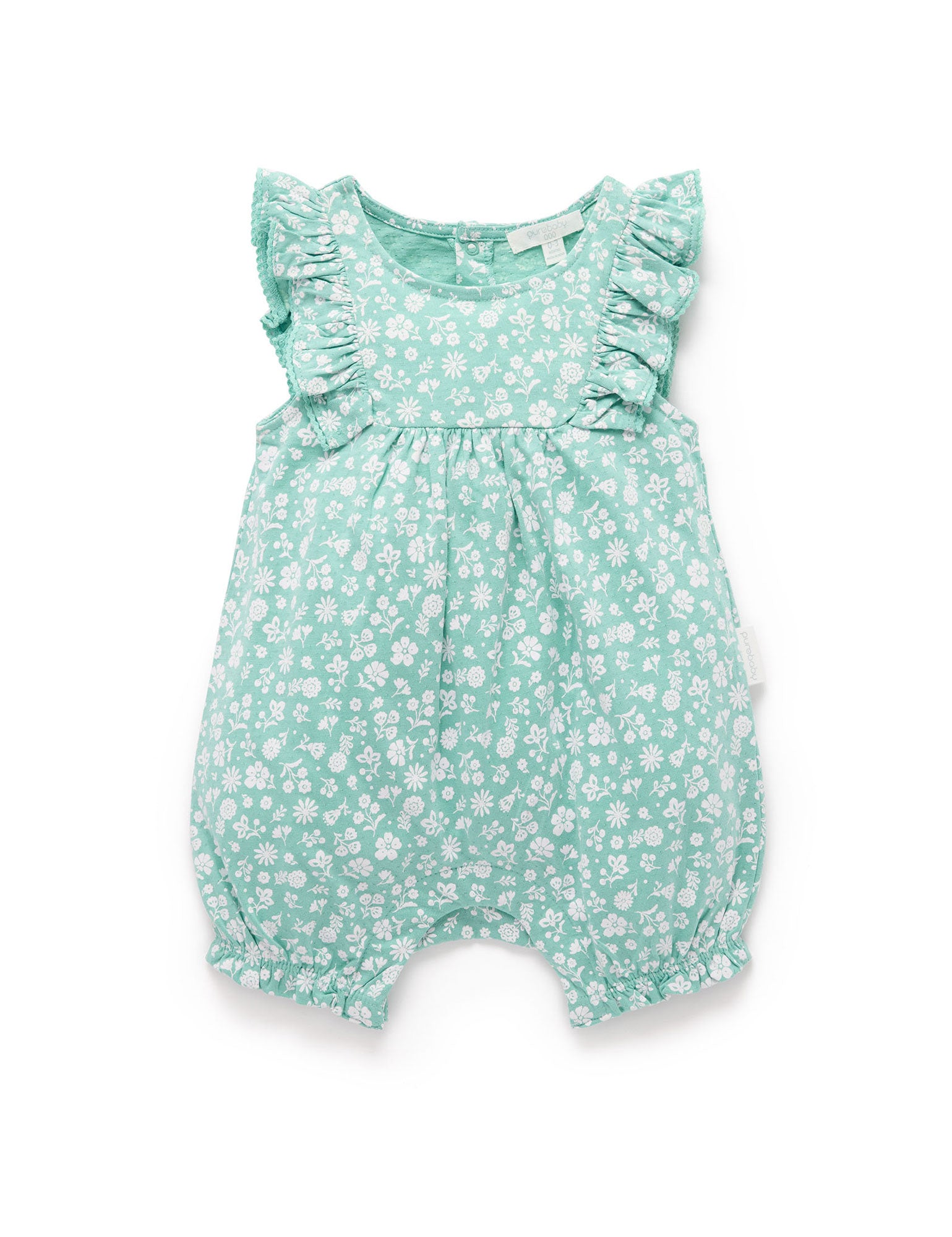Our Ruffle Shortie Growsuit is the perfect lightweight summer romper. Featuring sweet ruffle trimming at the shoulders and an all over floral print. Designed as a balloon style, with snap clips for easy dressing and gathers around the legs for a comfortable fit. Made from the softest 100% Organic Cotton for a breathable outfit. All over floral print Ruffle trim at the shoulder Balloon style for comfort Snap clips at the leg and back for easy dressing Made from 100% Organic Cotton