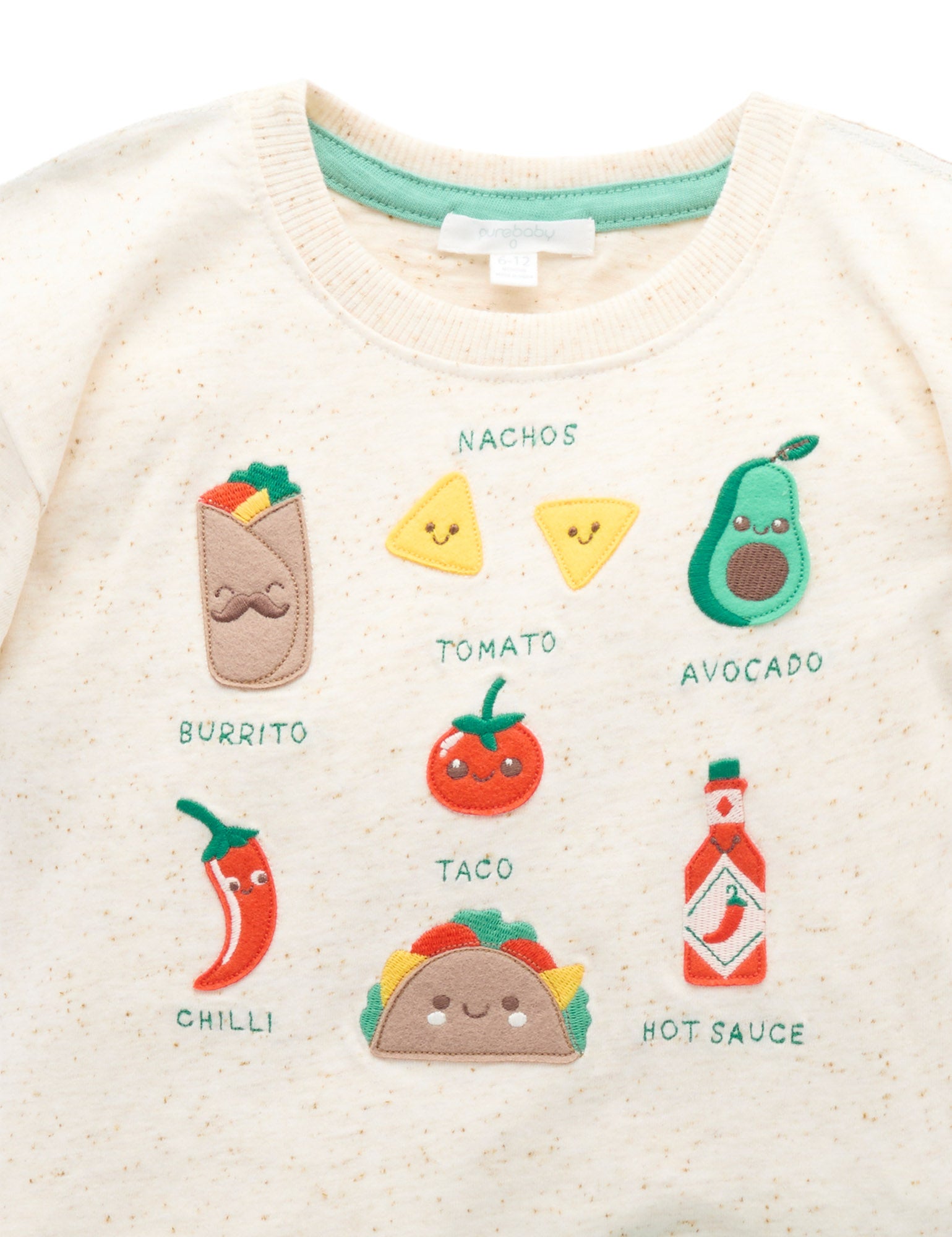 Our Small Bites Set takes the fuss out of outfitting with the perfect matching pieces! Featuring a soft jersey tee with a fun applique of burritos, tacos and more, and comfortable shorts made from stretchy unbrushed fleece. Made from our 100% Organic Cotton for a soft and breathable outfit, ideal for those warm sunny days. 2 piece set Fiesta foods applique Tee with elasticised rib trim that won't lose its shape Shorts with side pockets and dropped crotch Elasticised waistband for easy dressing Made from 100% Organic Cotton This item is available in both baby & kids sizing. Perfect for matching with siblings, cousins and friends, or purchase multiple sizes for wear in future years.