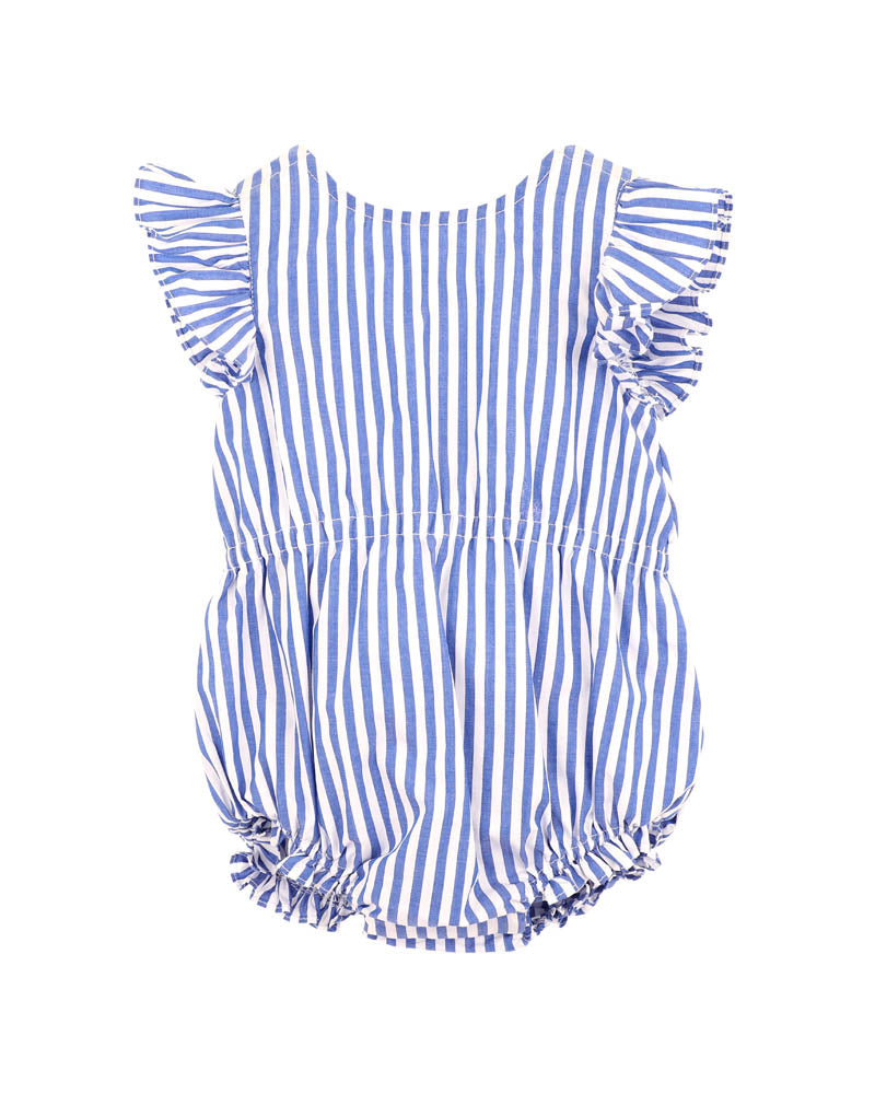 A fresh twist on summer stripes, this blue and white bodysuit is made for sunshine days and seaside adventures. With soft flutter sleeves and a playful keyhole detail at the back, it's perfect for everyday comfort and warm-weather outings.