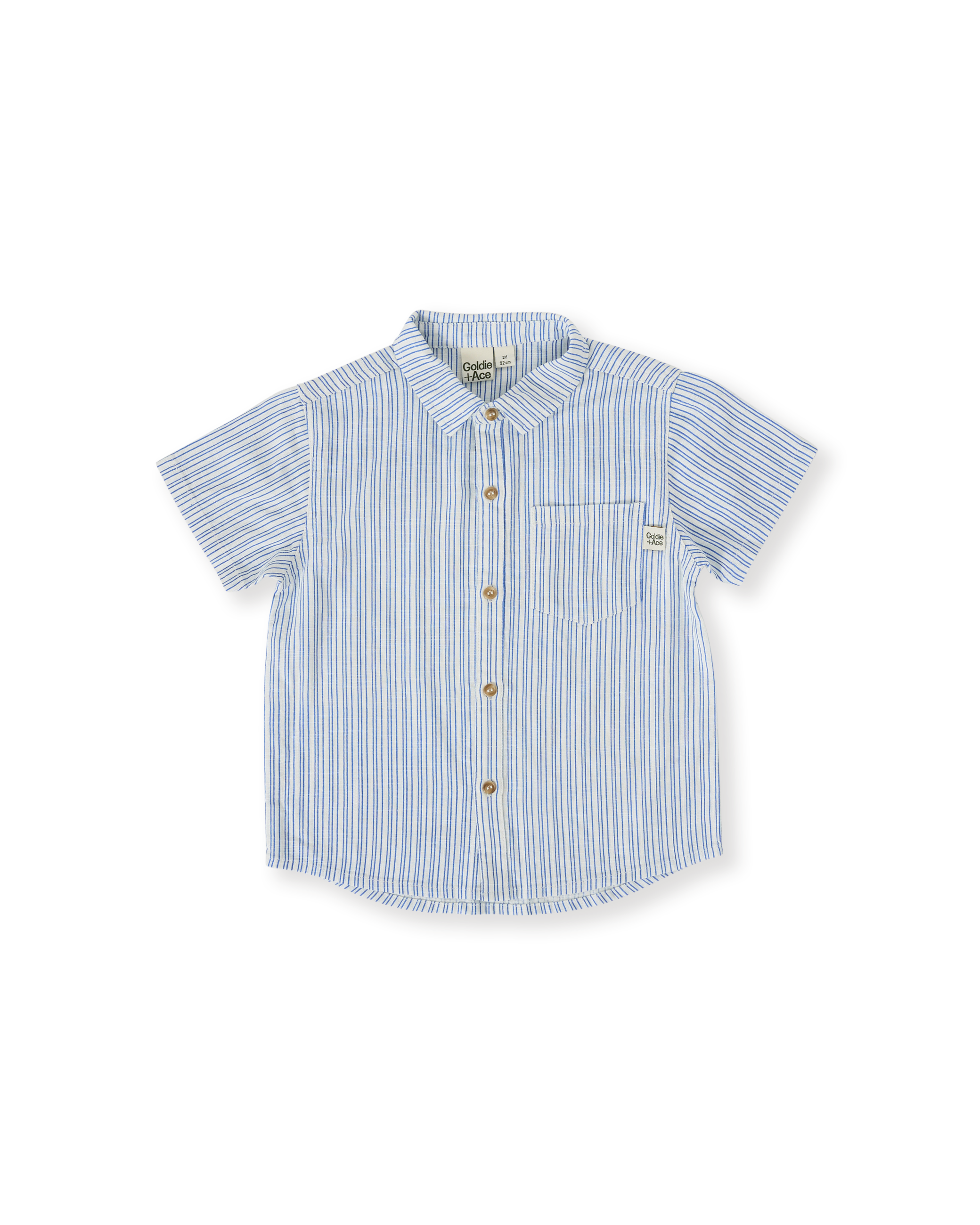 True to size. Relaxed fit. Collared, button down shirt with pocket detail and embroidery feature.