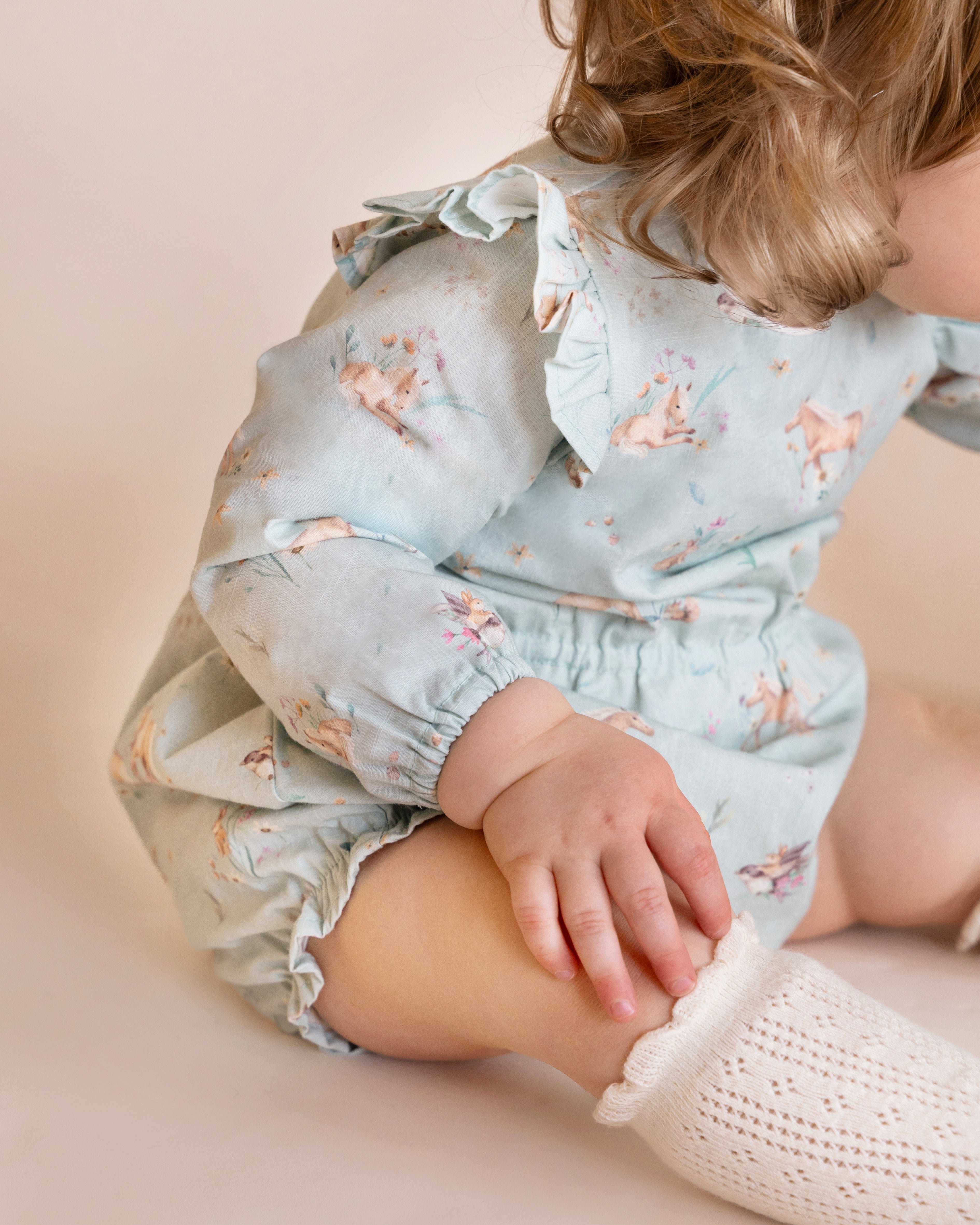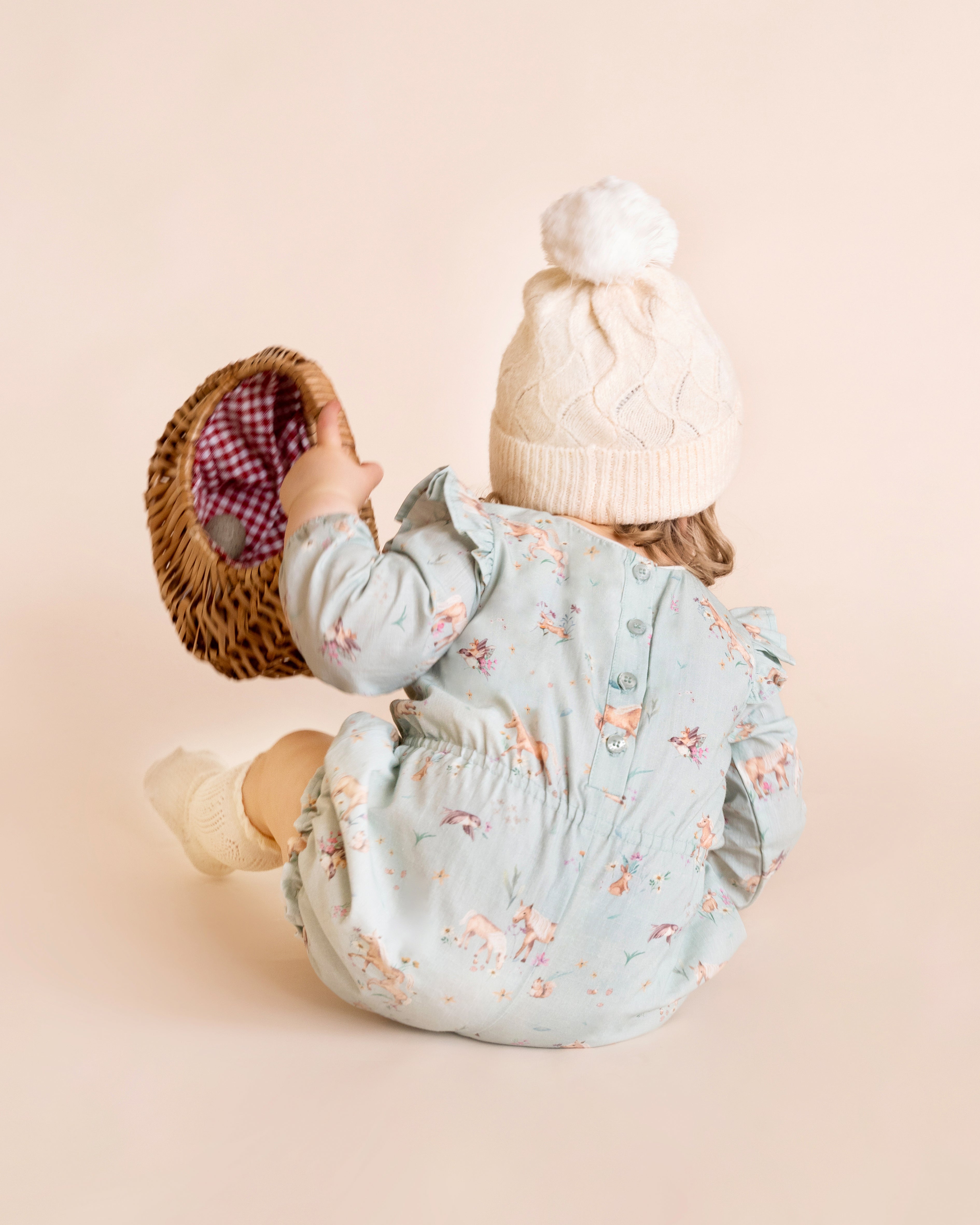 A beautifully detailed romper perfect for cosy days, outings and every little adventure in between. Soft, comfortable and easy to wear, it blends sweet design with all the practicality parents love, from delicate frills to thoughtful finishes that make changing simple.