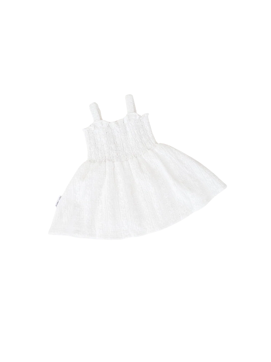 Cotton dress in our Laurel broderie anglaise fabric. Shirred bodice with adjustable button hole straps. Mix and match with items from our Christmas Collection.