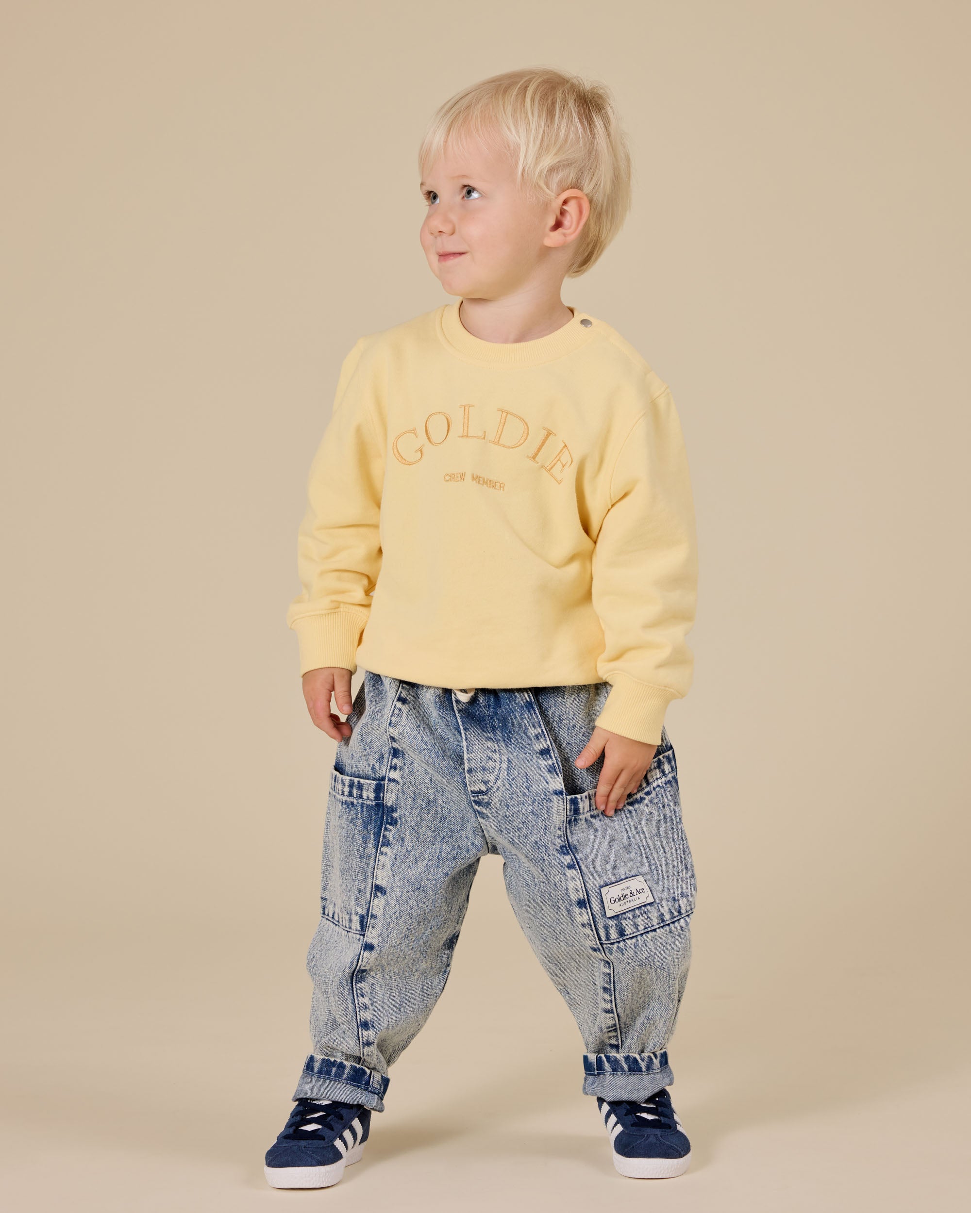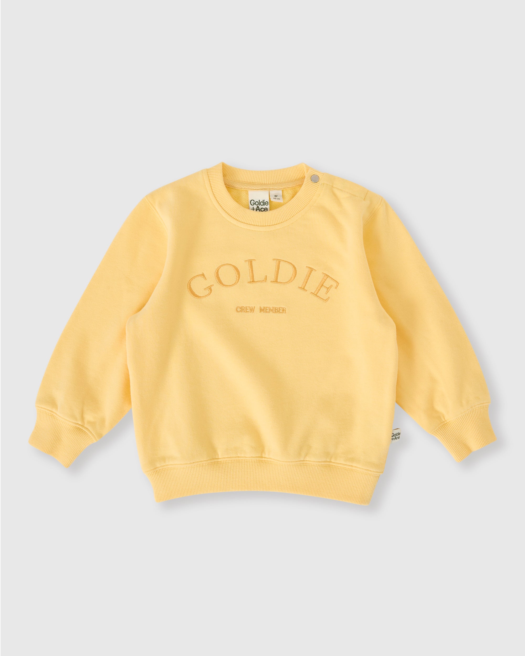 Introducing the Goldie Crew Embroidered Sweater by Goldie & Ace. Made with expertly crafted embroidery, this sweater adds a touch of elegance to any outfit. Its unique design is sure to turn heads, while its high-quality material ensures comfort and durability. Elevate your wardrobe with this must-have piece.