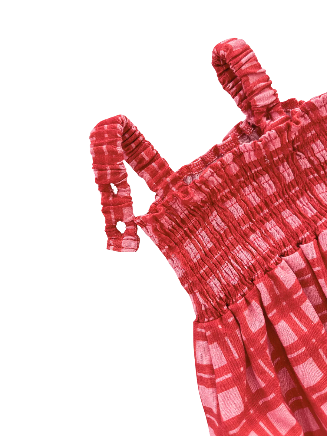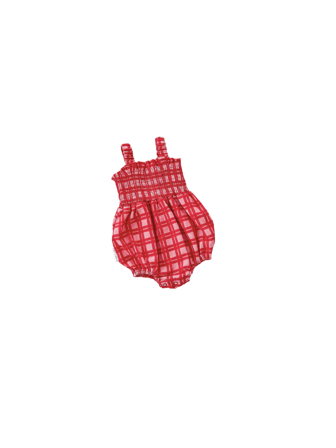 A lightweight cotton romper in our exclusive Jolie print. Shirred detailing across the bodice with adjustable button straps at back and snaps at the crotch for easy on/off and nappy changes. Mix and match with items from our Christmas Collection.