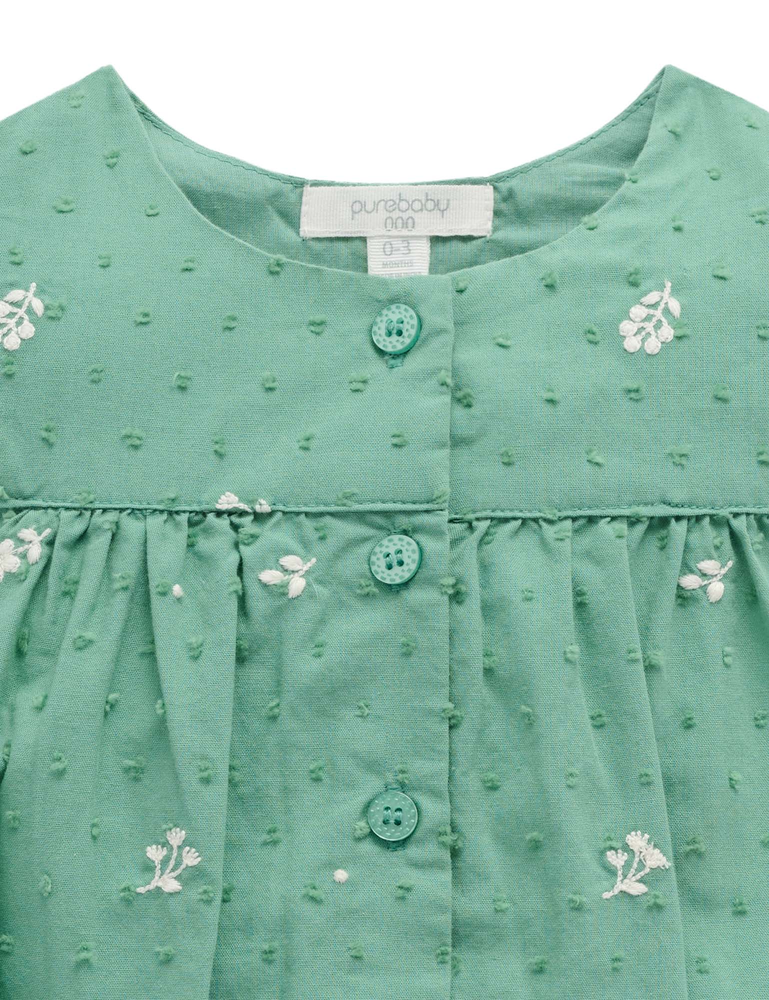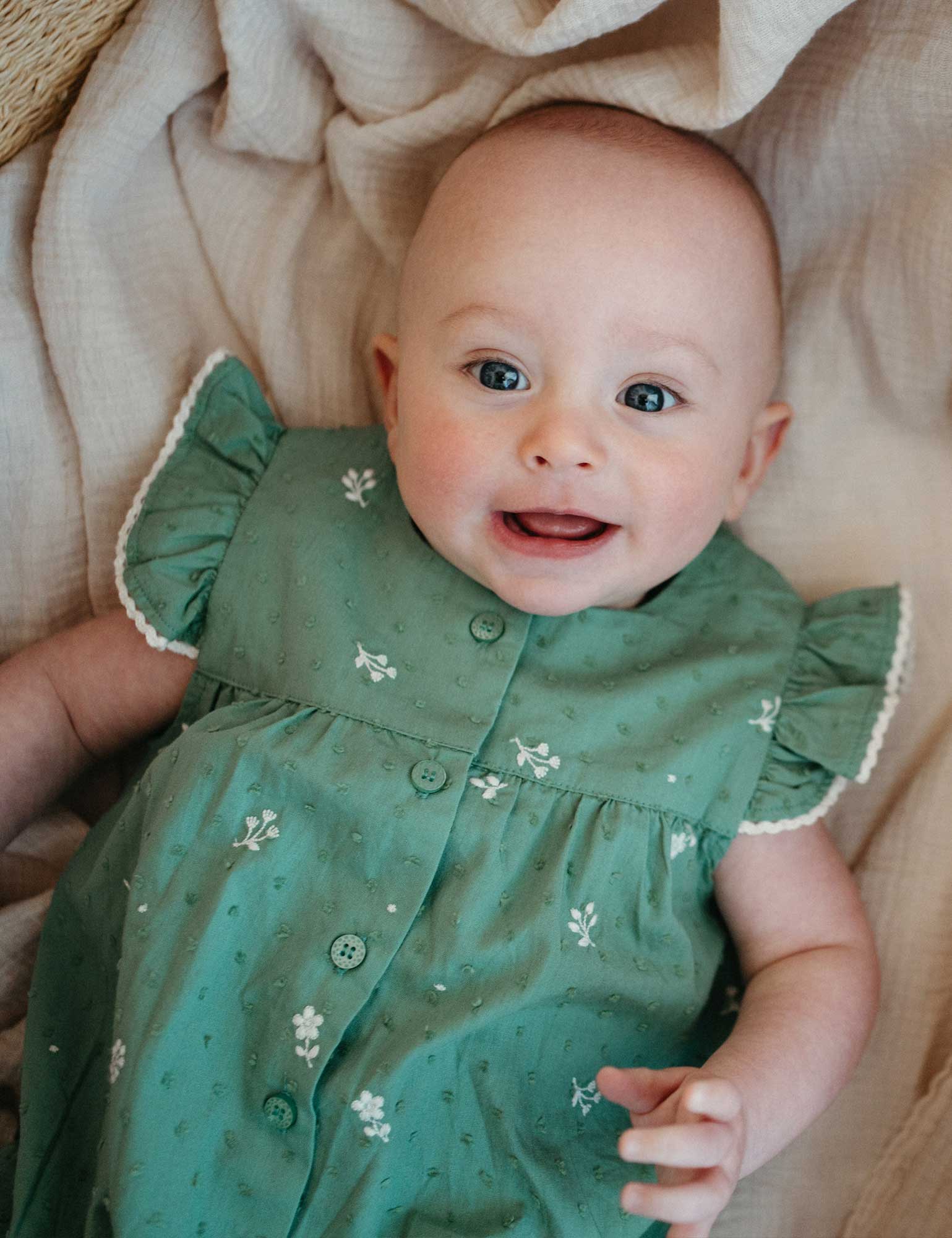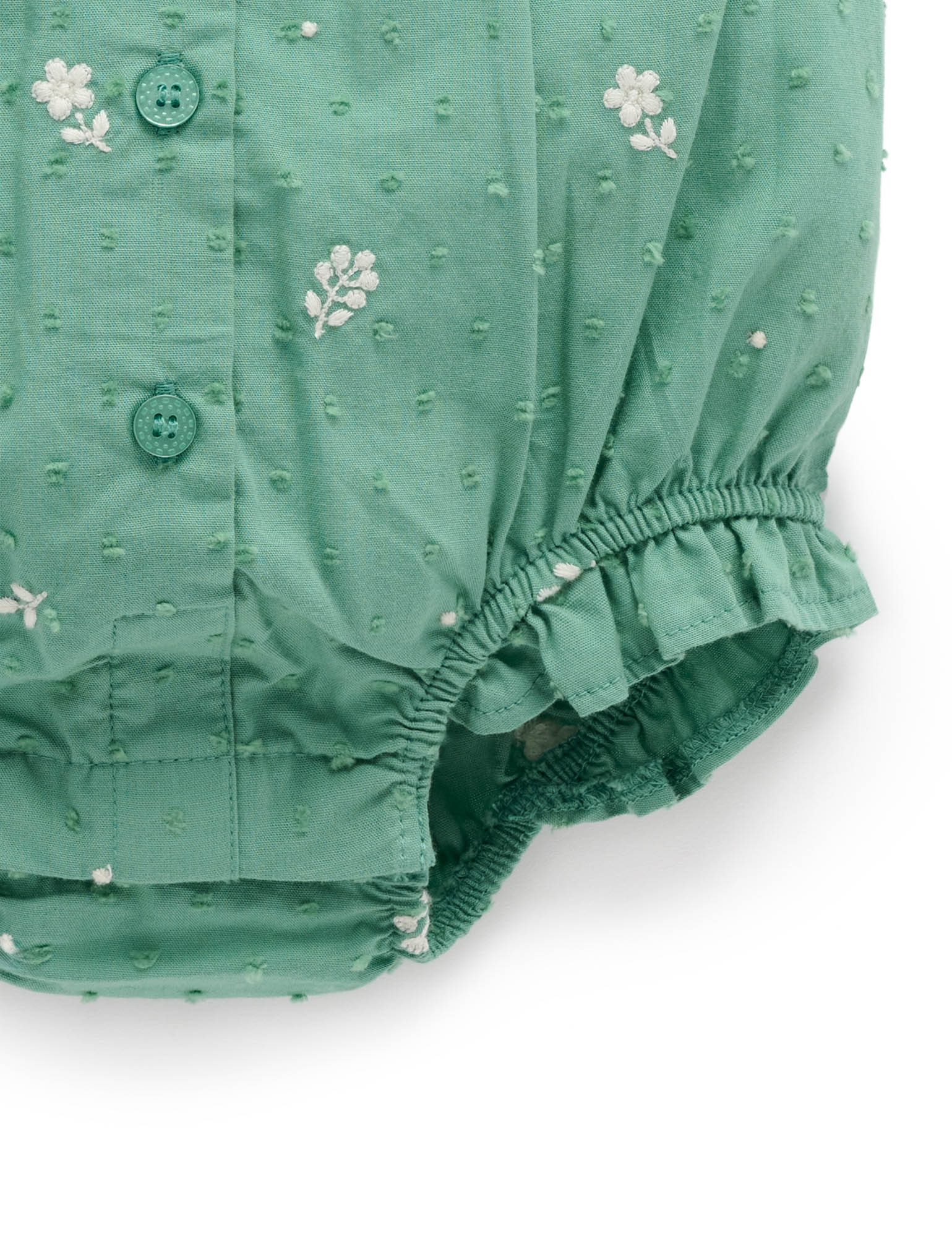 Our Festive Embroidered Bodysuit is pretty all-in-one style for the holiday season! Featuring ruffle details on the shoulders and legs, and a sweet all over floral embroidery. Made from the softest 100% Organic Cotton hailspot for a lightweight and breathable style.
