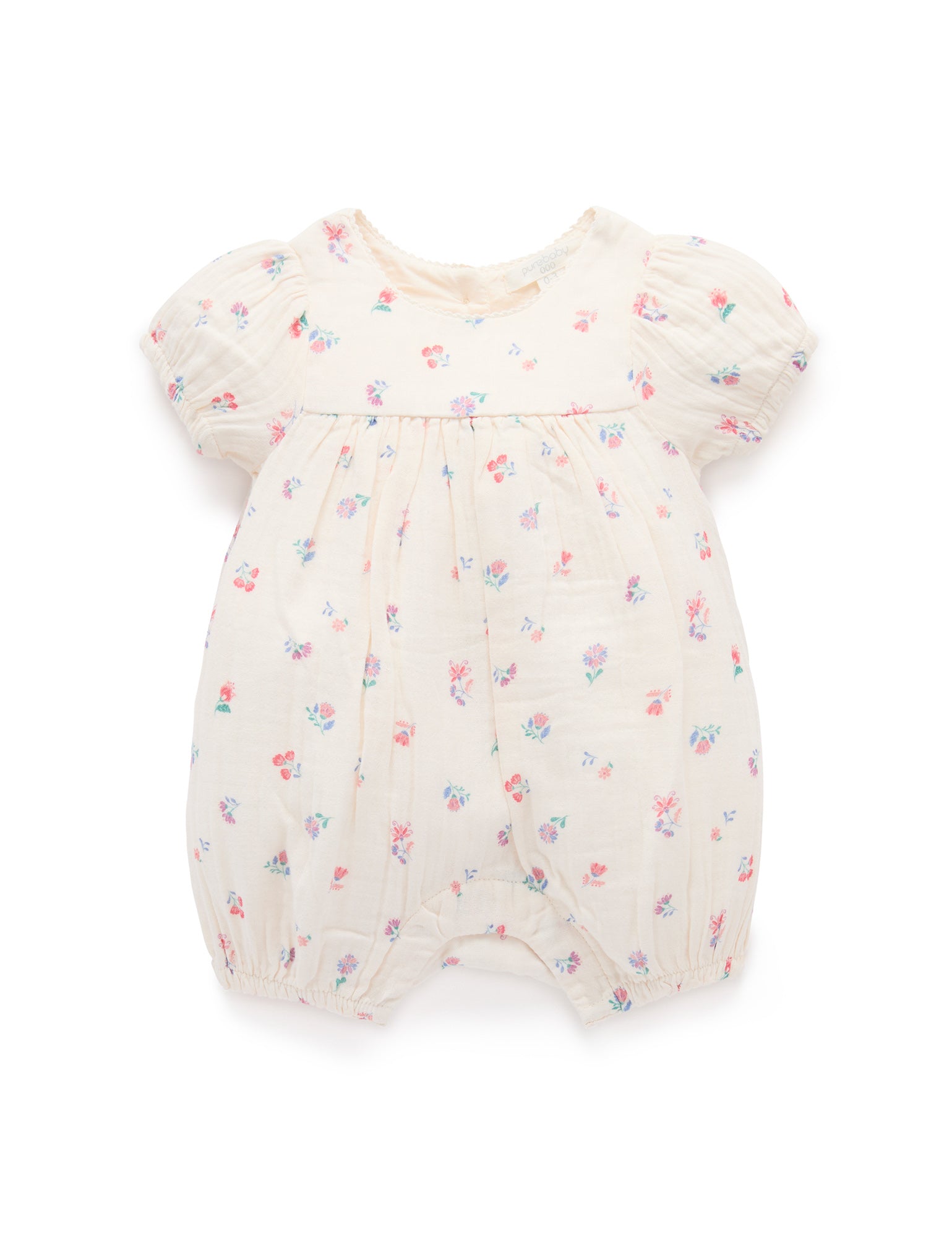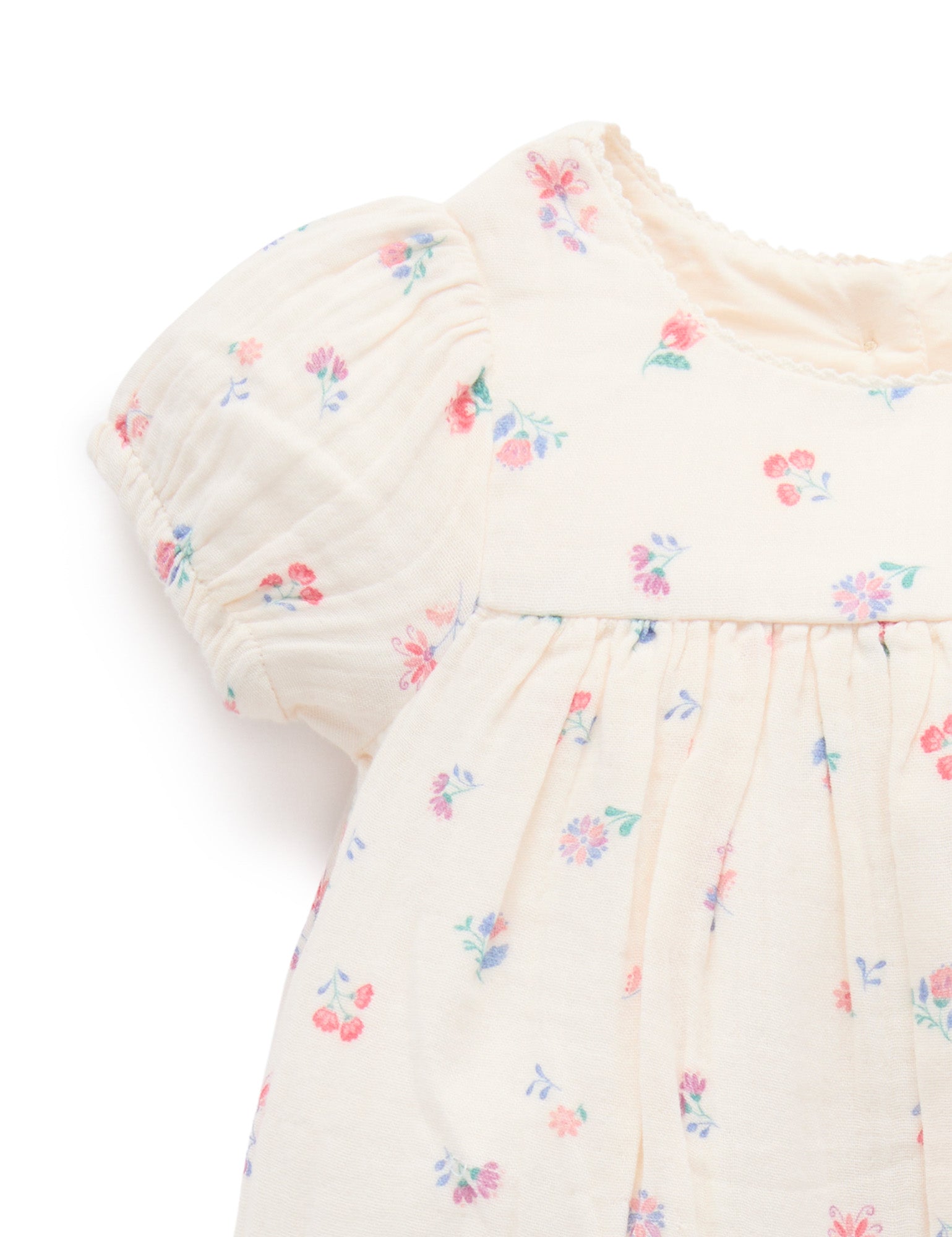 Our Marigold Fiesta Romper is the perfect lightweight summer style. Featuring a sweet all over watercolour floral print and puffed cap sleeves. Designed as a balloon style, with snap clips for easy dressing and gathers around the legs for a comfortable fit. Made from the softest 100% Organic Cotton muslin for a breathable outfit. All over floral print Rick rack neckline detail Puffed cap sleeves with elasticised cuffs Balloon style for comfort Snap clips at the leg for easy dressing and back neck buttons Made from 100% Organic Cotton Muslin