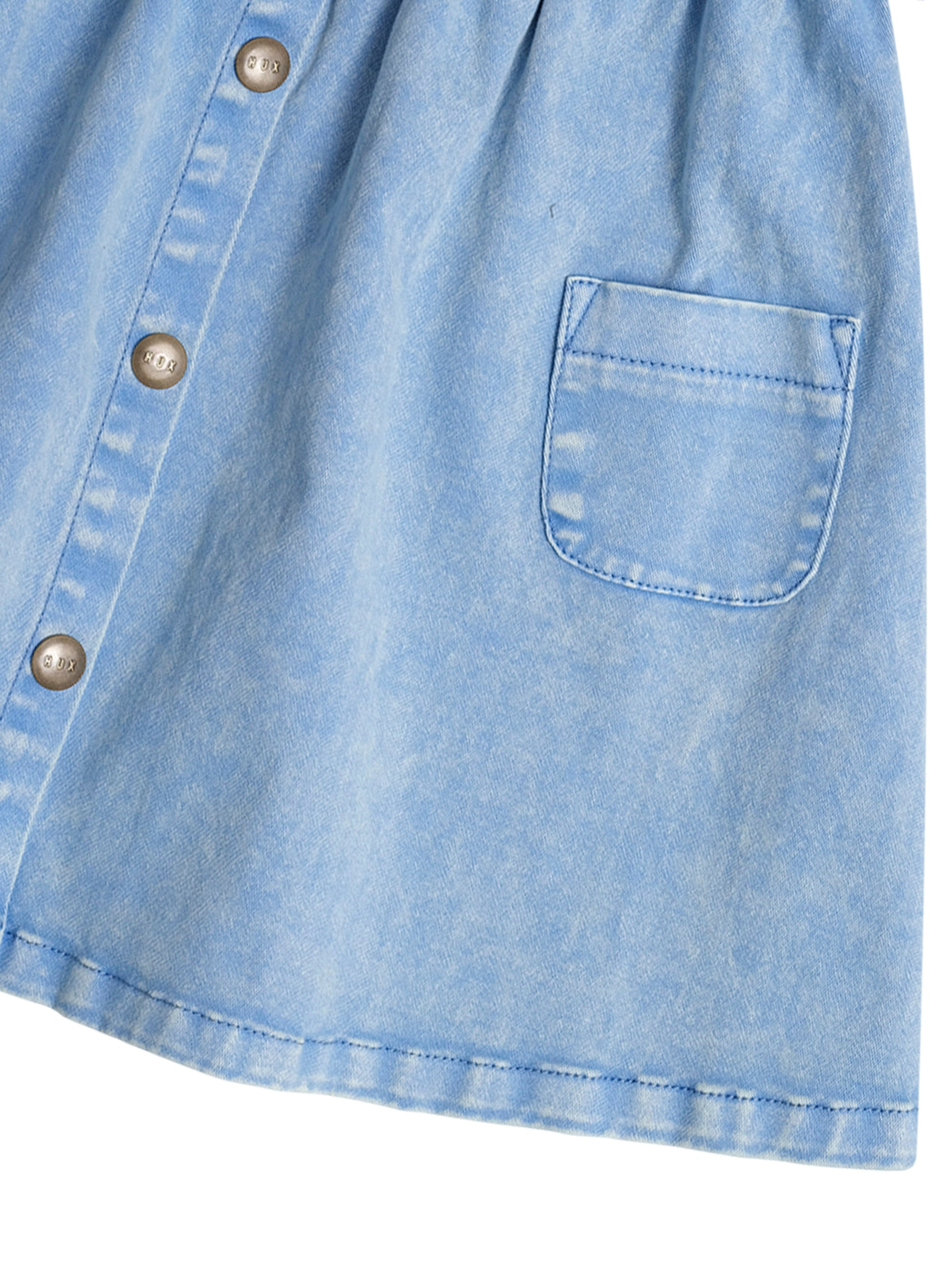 The ""I carried a watermelon"" dress made from vintage garment dyed cotton. It features a playful watermelon frill collar, puff sleeves and snap button down front.