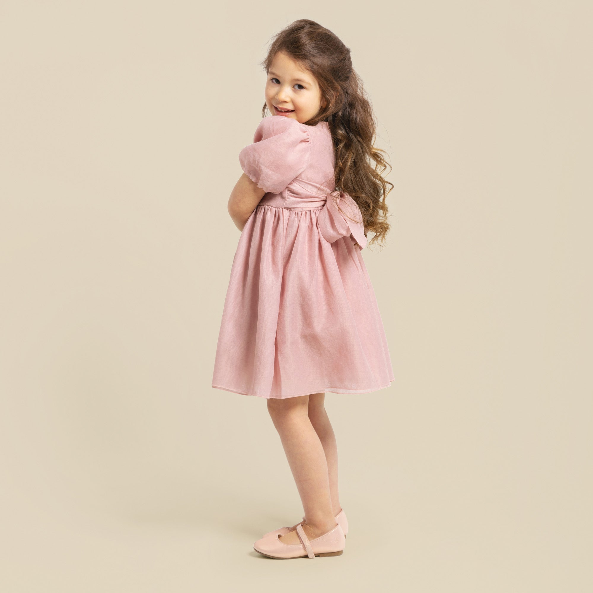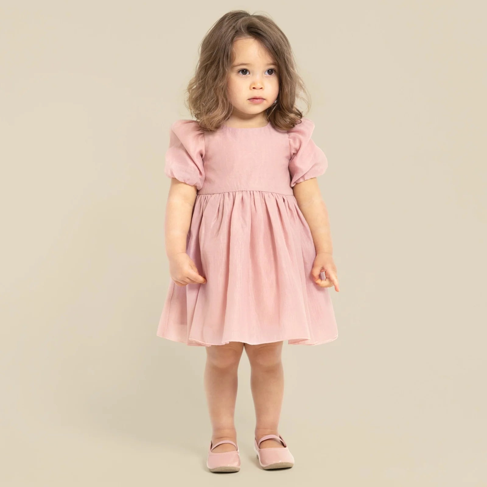 We are truly in love the Noa Puff Sleeve Bow Back Dress, featuring puff sleeves, sash that ties into a bow back and soft chiffon material. Ideal for your girl's next flower girl wedding dress, birthday party or special occasion!