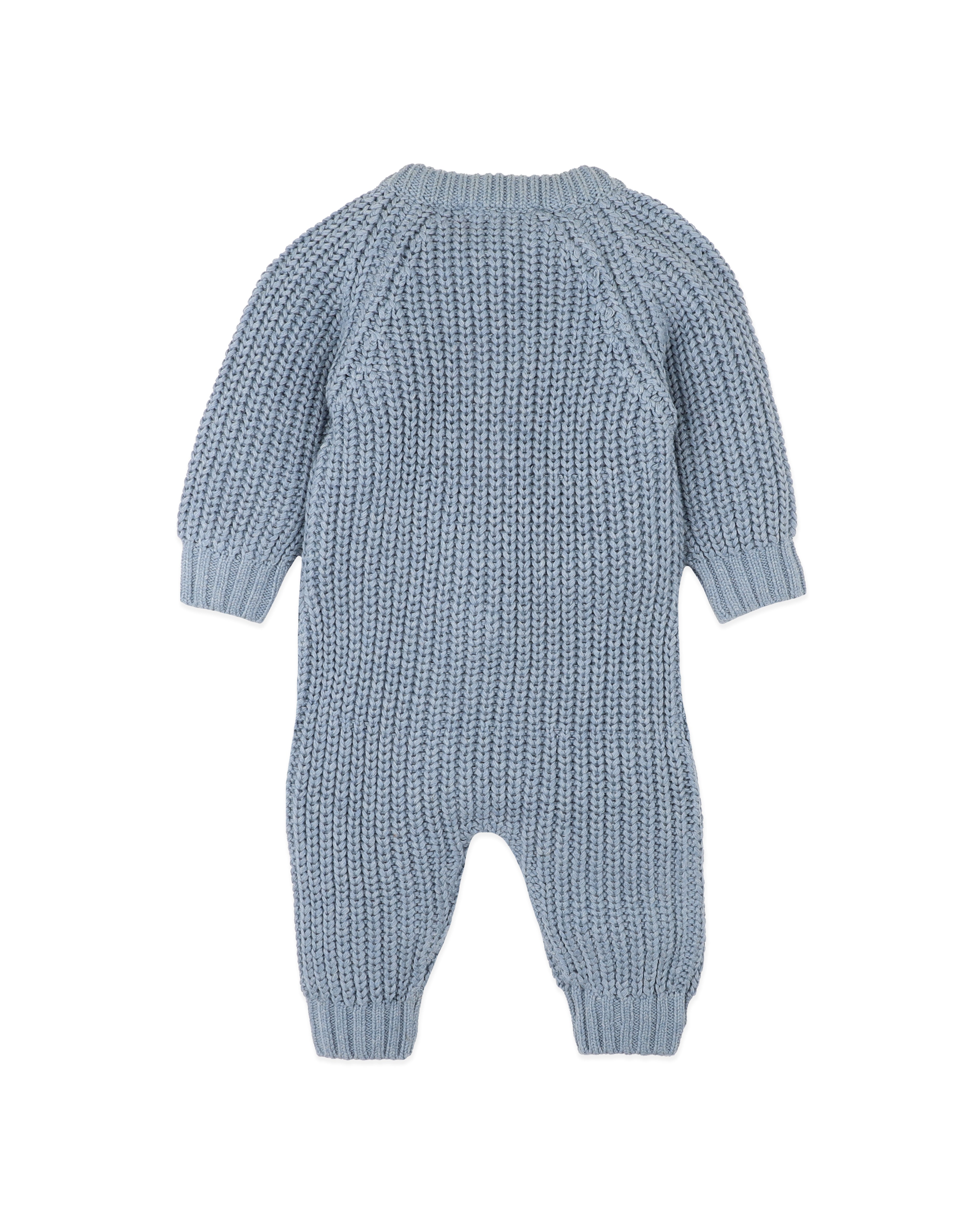 Wrap little ones in cosy comfort with this timeless knitted all-in-one, thoughtfully designed for cooler days and cuddly moments. Crafted in a soft fisherman’s rib, it has a beautiful natural texture and a gentle weight that feels snug without being bulky. Raglan sleeves allow for easy movement, while ribbed finishes keep the warmth in. Finished with a practical front zip for fuss-free changes, this is a piece made for slow mornings, afternoon naps and everything in between.