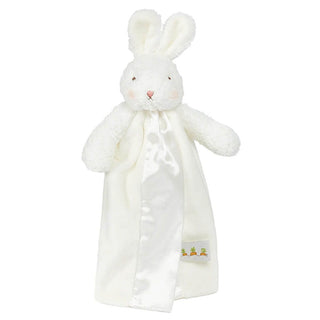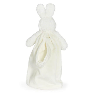 Perfect for home or on-the-go, this White Bunny Bye Bye Buddy is a plush toy and comfort blanket in one. Featuring the softest baby-safe plush fabrics, this Bye Bye Buddy also includes a handy loop which easily attaches to baby's cot, pram or car seat for maximum play and comfort value. An exquisite split blanket complete with satin trim and lining makes this an extra-special security blanket for your little one to love.