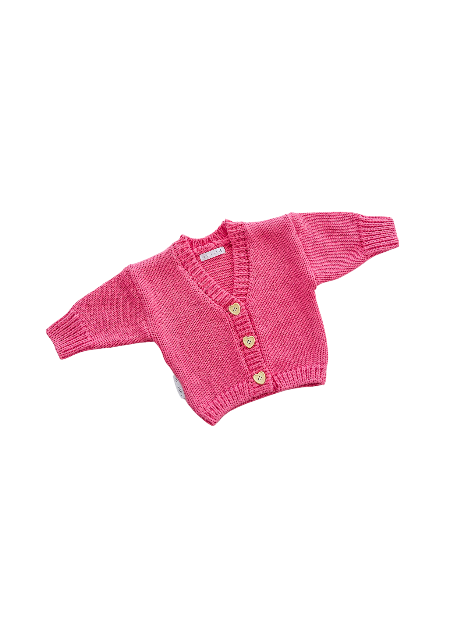 Knit cardigan featuring embroidered elbow flower detail and functional love heart buttons. Mix and match with items from our Marlow + Raspberry Collections.