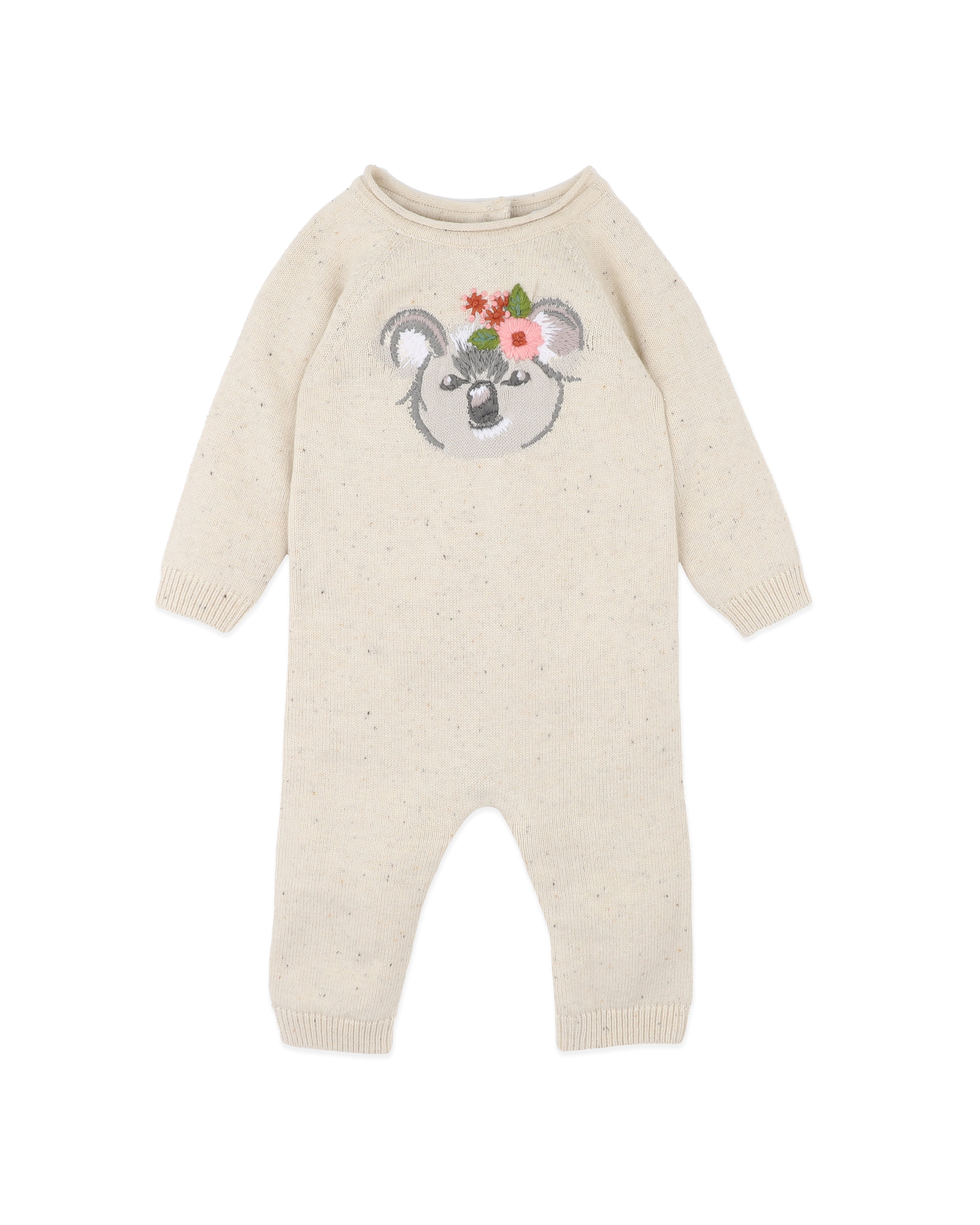 A beautifully cosy organic cotton blend knit made for treasured first moments, this sweet romper brings a little Australian charm to cooler-day dressing. Featuring an adorable koala embroidery with delicate floral details, it feels timeless yet playful, perfect for cuddles, outings, and everything in between. Thoughtfully designed for comfort and easy changes, it’s a keepsake-style piece you’ll reach for again and again.