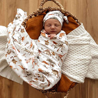 Snuggle Hunny soft organic cotton muslin wrap features our exclusive Dino design and is a beautiful multi-purpose wrap ideal for swaddling and wrapping bub. If you love dinosaurs you will love this wrap and the whole Dino range.