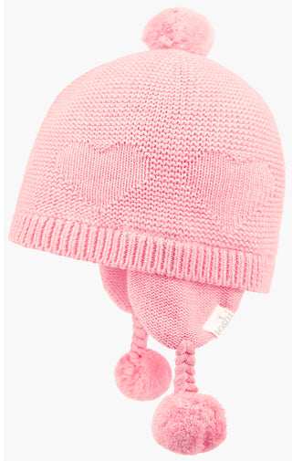 Toshi Earmuff Hearts is crafted from the finest quality certified 100% organic cotton yarn. Organic certification ensures the beanie is gentle on heads, as well as our precious environment. The beautifully textured melange yarn brings an element of refinement to this beanie. The Toshi baby beanie features ear flaps for cosy and nurturing protection from the elements. Delicately subtle heart shaped jacquard adorns our pretty baby beanie. Pom poms create a cute and whimsical look. The baby beanie Earmuff Heart is fully lined for enhanced comfort and greater warmth during our cooler months.