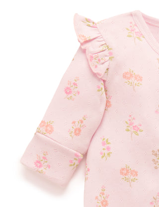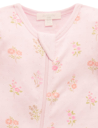 Soft, easy and practical, our iconic Printed Zip Growsuit is a wardrobe essential for your little one. Featuring a sweet all over floral print, ruffle details and a two way zip all the way through for easy dressing. Designed with rolled cuffs on the arms and legs to grow with your little one, and inbuilt turnover foot covers. Made from the softest certified 100% Organic Cotton for a soft and gentle touch against your little one's skin. Available in 2 sweet all over prints. All over floral print Ruffle details at the shoulder Two way zip for easy dressing Rolled rib cuffs on arms and legs to grow with your little one Inbuilt turnover foot covers Safety folds at the neck and leg to protect their skin Made from 100% Certified Organic Cotton
