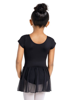 Twirl like royalty in the Studio Collection Short Sleeve Dress! Scoop front and back necklines for comfortable coverage. The attached skirt will have every little dancer twirling from class to class, and with our buttery soft Tactel® fabric, they won't want to take it off!